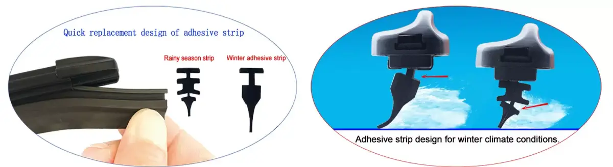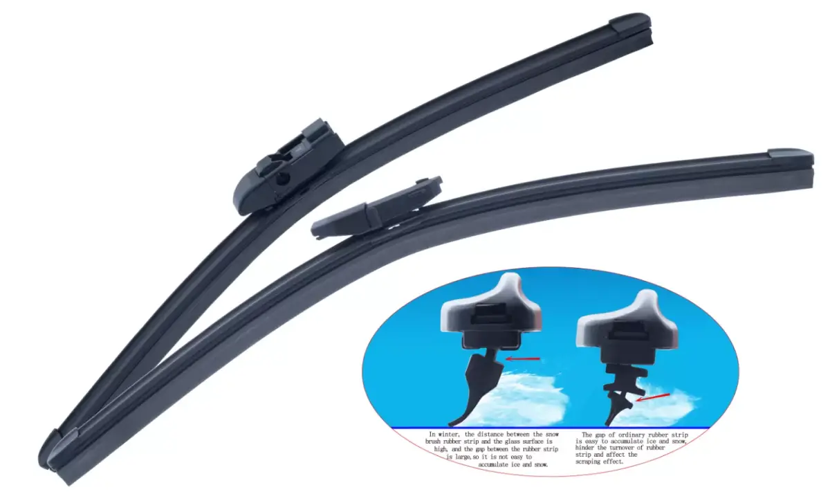 In winter, the distance between the snow brush rubber strip and the glass surface is high, and the gap between the rubber strip is large,so it is not easy to accumulate ice and snow.